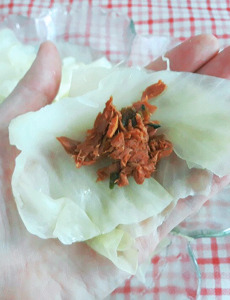 양배추 가운데 구멍을 살짝 내준 뒤