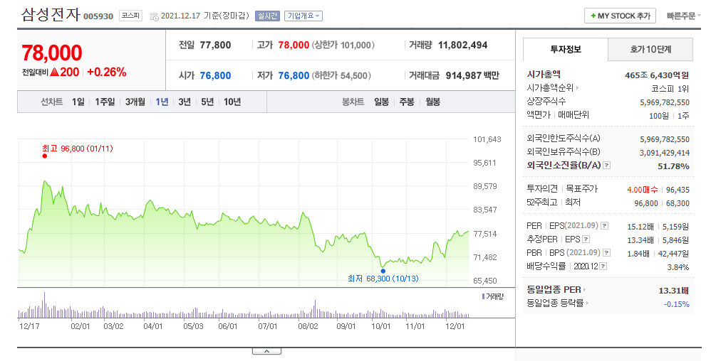 10만원까지 오른다는 전망들이 속속 나오면서 더욱 삼성전자 주가가 궁금해진다.